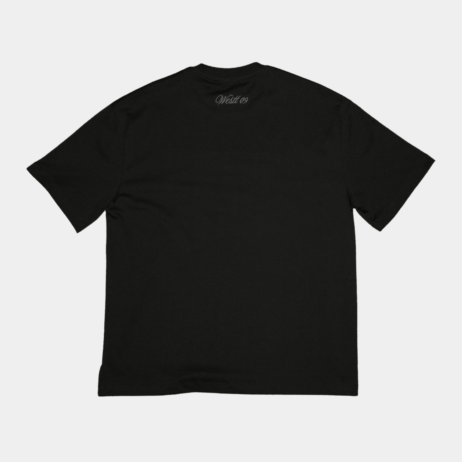 "Westt 09" script logo fully embroidered in white on the back of garment (top)
