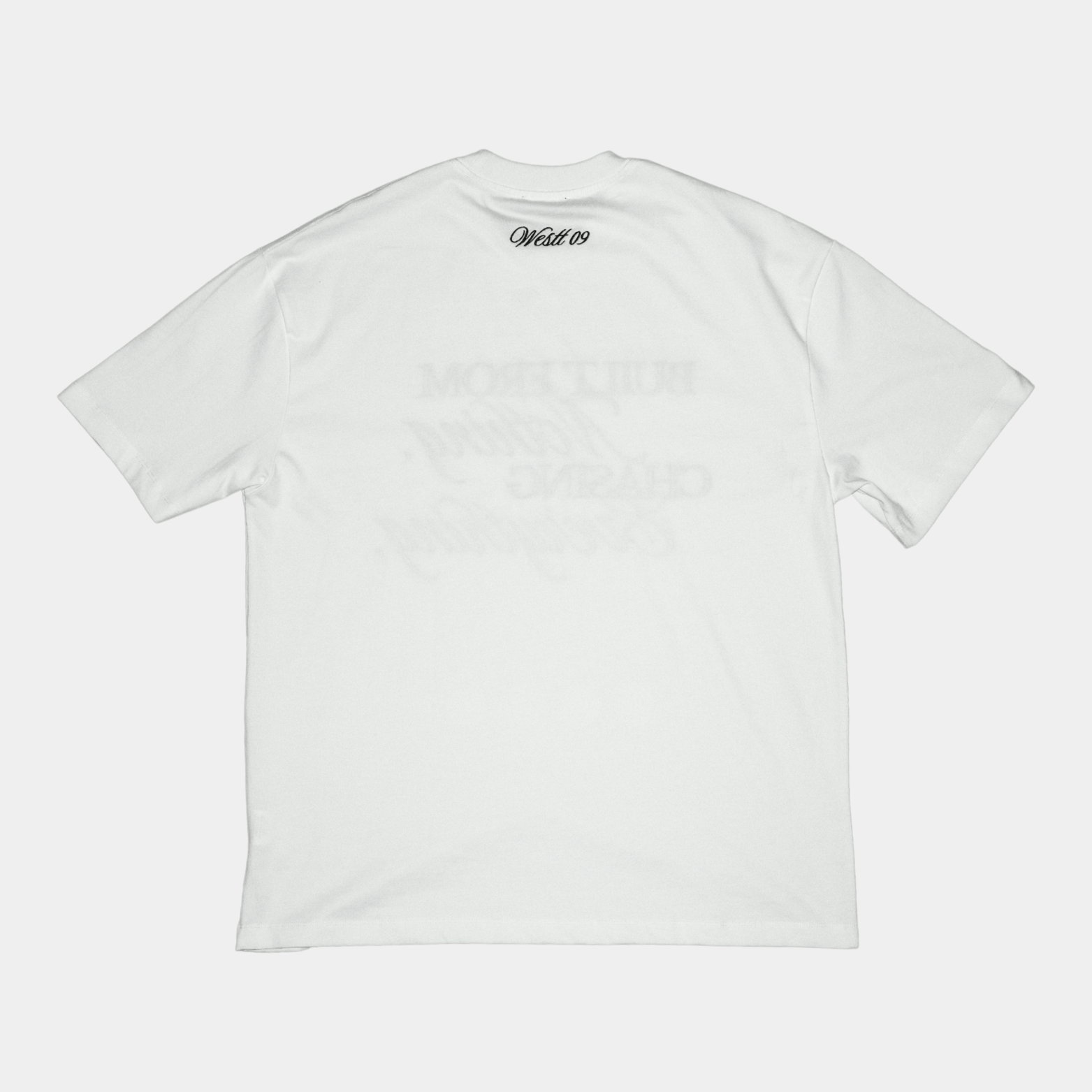 "Westt 09" script logo fully embroidered in black on the back of garment (top)